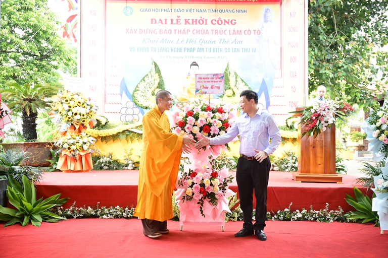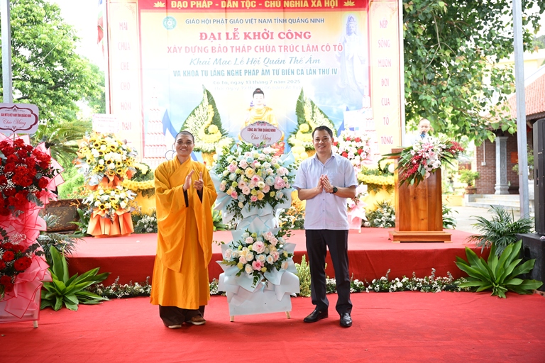 Cùng sự tham dự của các đại biểu thuộc các sở, ban ngành hữu quan của tỉnh Quảng Ninh; thường trực HĐND, UBND, UBMTTQ, các cơ quan, ban ngành, đoàn thể của Đặc khu Cô Tô; đại diện các lực lượng vũ trang trên đảo, các tôn giáo bạn; chư tôn thiền đức Tăng Ni trụ trì các chùa trong và ngoài tỉnh Quảng Ninh; và đông đảo quý tín đồ, Phật tử gần xa.