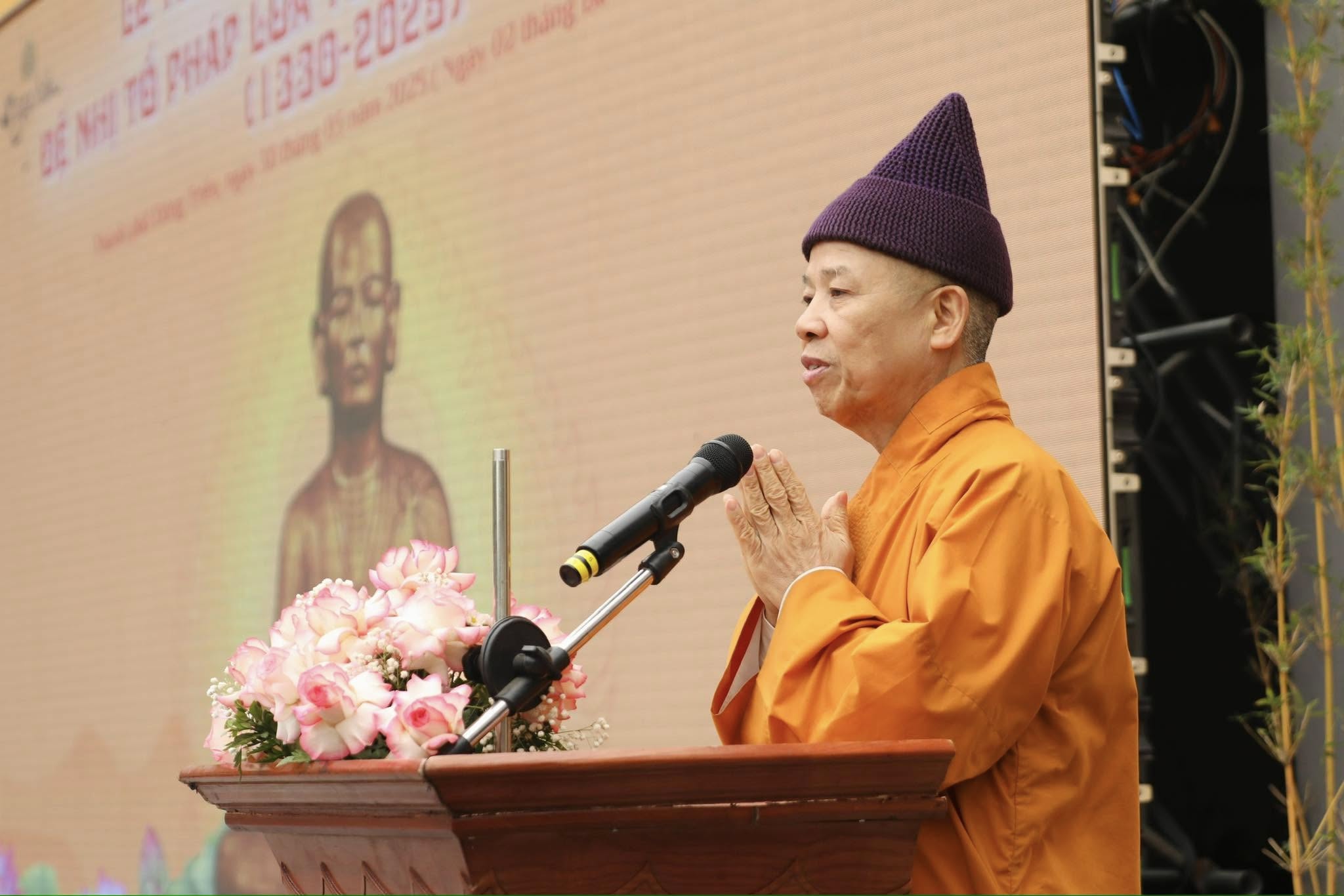 Phát biểu tại buổi lễ, Hòa thượng Thích Thanh Quyết đã chia sẻ thêm những thông tin sâu sắc về Phật hoàng Trần Nhân Tông, Tam Tổ Trúc Lâm cùng những giá trị bền vững của Phật giáo Trúc Lâm trong đời sống.