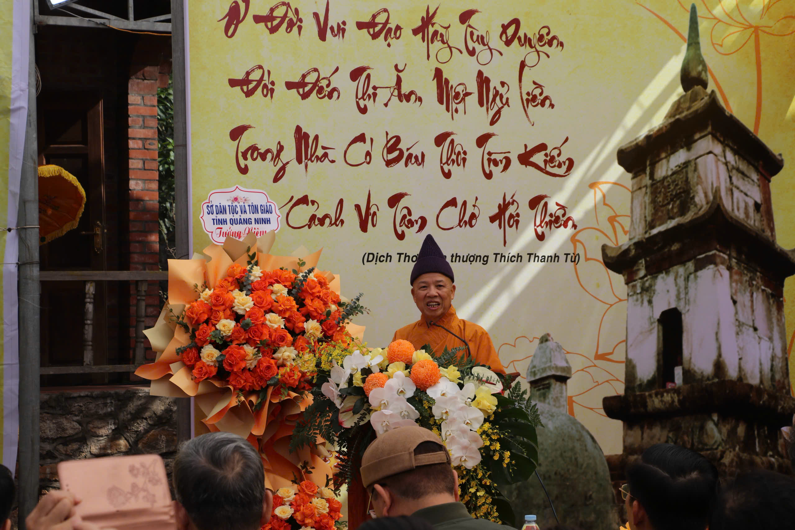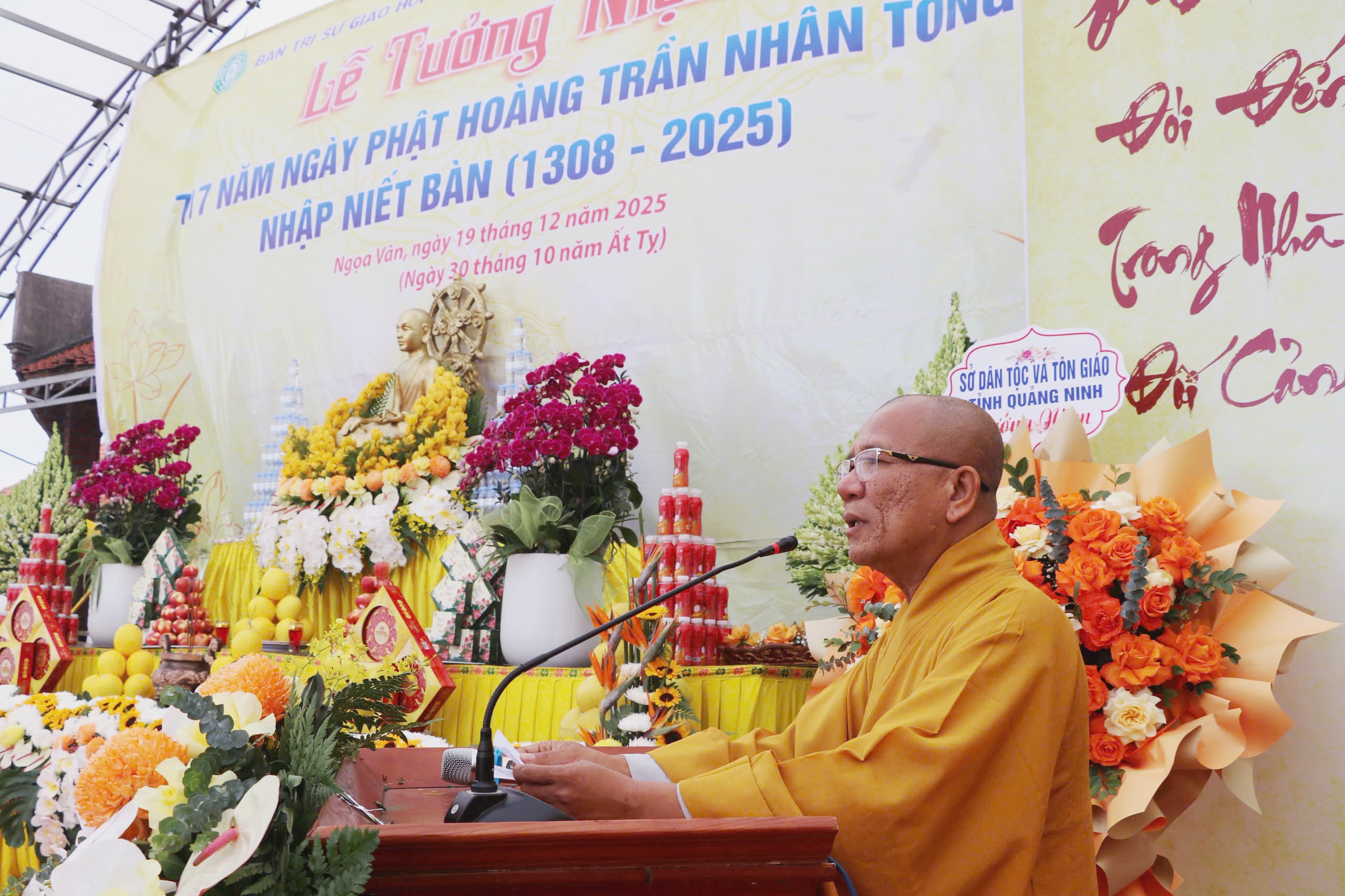 Tại buổi lễ, Thượng tọa Thích Đạo Hiển – Phó Trưởng ban kiêm Chánh Thư kí Ban Trị sự GHPGVN tỉnh Quảng Ninh thay mặt Ban Tổ chức dâng văn tưởng niệm Đức Vua – Phật Hoàng Trần Nhân Tông nhập Niết bàn của GHPGVN.