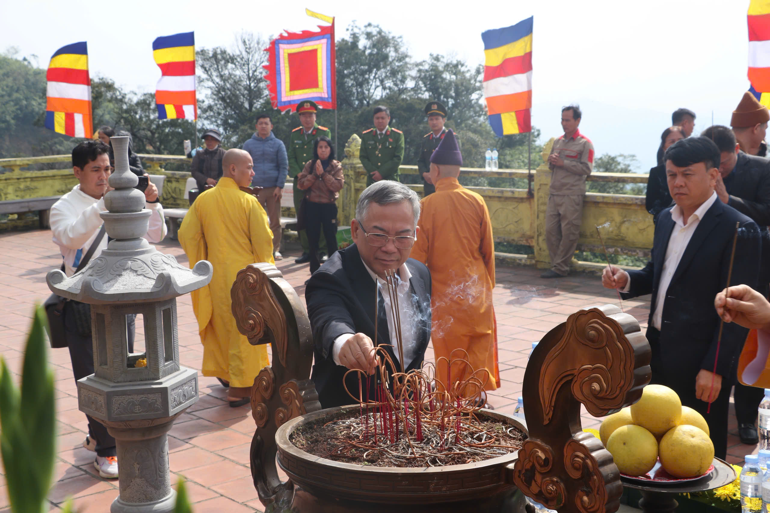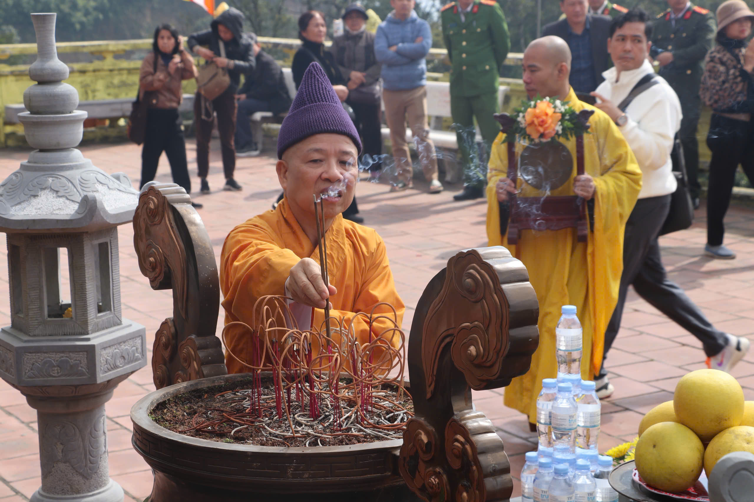 Tiếp đó, chư tôn đức cùng quý đại biểu, quý tín đồ Phật tử nhất tâm dâng hương tưởng niệm Đức vua – Phật hoàng Trần Nhân Tông tại Am – chùa Ngọa Vân và cầu nguyện quốc thái dân an.